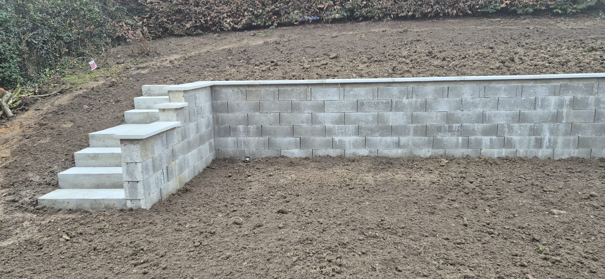 M. Otsman vient d'intervenir chez nous pour la réalisation d'un mur de soutènement d'un mètre de haut sur 30 mètres linéaire, plus la création d'une terrasse entourant la maison.